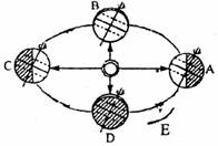 (2)当阳光照射在C处时,地球公转方向是我国的_______季,正午旗杆的影子长短应是下图中的_______图所示。