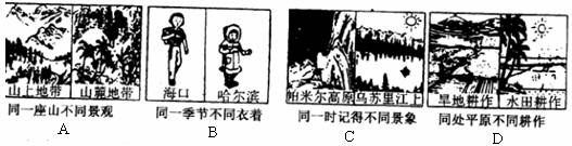 C.长江中下游平原--水稻 D.黄土高原--小米