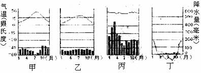 4.将下列气温曲线和降水柱状图与相应的气候类型连线。(2分)