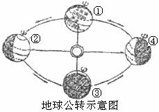 (2)9月23日前后,地球公转到________位置,此时,太阳直射在________度纬线上。