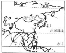 (1)上图为影响我国的________(冬、夏)季风,受此影响期间,我国气候的主要特点是________________________________________________。