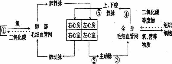 (1)血液循环流动是在由心脏和 组成的封闭的管道中进行的,②③④⑤组成的循环路线叫 。