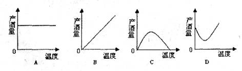 15.下图中,能正确反映酵母菌发酵时产酒量随环境温度变化的曲线是