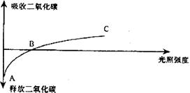 3.(7分)下面的曲线表示某绿色植物随光照强度增强吸收与释放二氧化碳的情况,A、B、C为曲线上的三个点,请回答: