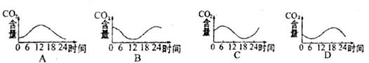 13、生物小组在玻璃温室中进行植物栽培实验,并对温室内空气中的二氧化碳含量进行了24小时测定。曲线中测定结果正确的是( )
