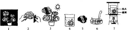 4.下列是绿叶在光下制造有机物的实验,请据图回答相关问题。(7分)