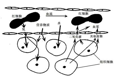 6、(6分)下图是人体血液与组织细胞之间的物质交换示意图,请根据图回答下列问题: