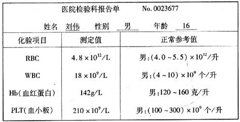 25.(4分)刘伟同学在“五一”长假期间,大部分时间泡在人声嘈杂、卫生条件极差的游戏厅和网吧,后来出现了发烧、咳嗽等症状,医院诊断他患上了流行性腮腺炎。下表是他的血常规化验报告单,分析回答: