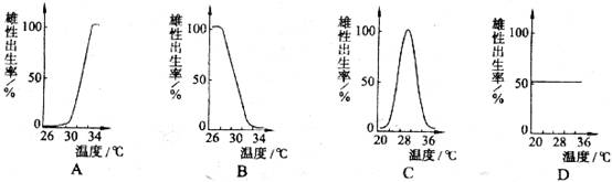 15.有些动物的性别分化受温度影响。下图是4种爬行动物的卵在不同温度下发育成雌、雄个体的比例曲线图,其中能表示雄性仅出现在某个很狭窄的温度范围内,而高于或低于此温度范围则出现雌性的是