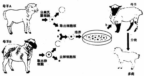 7.(4分)世界上第一只克隆羊“多莉”的培育过程如下图所示。请据图回答: