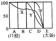 8.下图是食物中的淀粉、脂肪、蛋白质经过人体消化道各段时,其含量的变化情况,其中纵坐标表示未被消化的淀粉、脂肪、蛋白质的含量百分比,横坐标表示消化道的各部分。则W、Y、X依次代表的是