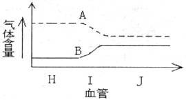 14.图中曲线表示的人体血液中氧气和二氧化碳含量的变化,其中H为上肢动脉。能表示该图含义的正确组台为