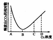 18.下图是关于水果存放时,空气中氧气浓度与水果释放出的二氧化碳气体量的关系曲线。根据图,你认为保存水果应选择哪个状态下的氧气浓度最适当?