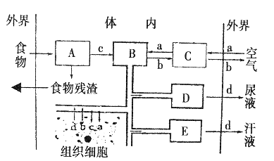 下图表示人体组织细胞的新陈代谢与部分器官、系统间的关系,其中a、b、c、d表示进出细胞的相关物质,请分析回答: