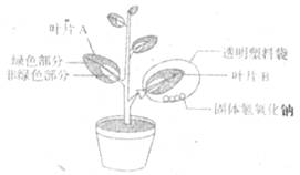 (3)将实验装置放在阳光下4小时后同时摘下A、B,利用______________,进行脱色处理,然后滴加碘液。对比叶片A绿色和非绿色部分,变蓝的是______________部分,不变蓝的是_______部分,实验结果表明______________;对比叶片A的绿色部分和叶片B绿色部分,不变蓝的是______________,实验结果表明___________________________________。