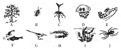 27.(10分)观察下图,按要求写出图中生物的归类:(用字母表示)