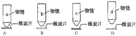 7.用显微镜的一个目镜分别与4个不同倍数的物镜组合观察临时装片,形成清晰物像时,每一物镜与载玻片的距离如下图所示。用哪一物镜在一个视野中看到的细胞数目最多?