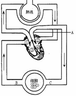 (4)经过血液循环,B处和C处的血液中,氧气含量较多的是 处。