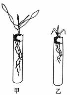 ③ 将两株生长状况相同的幼苗分别培养在甲和乙中,过一段时间后长势情况如右图。