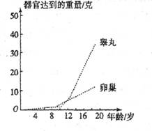 (1)从图中可以看出,在童年期,性器官的发育特点是____________,几乎处于_________状态。