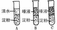 (1)A、B、C三支试管中分别加入淀粉糊2毫升,再向A中加入2毫升清水,向B和C中各加入2毫升唾液,再向C中滴入稀碘液,C试管中出现的现象是 。