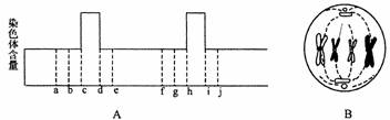 C.A图的e-f阶段DNA含量加倍,h-i阶段染色体数目加倍