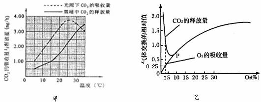(2)甲图中,环境温度为15℃时,该植物通过光合作用每小时消耗CO2 mg;与30℃条件下相比,该植物在35℃时光合作用合成有机物的量 (增加、减少或不变)。