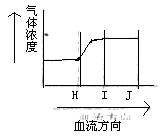 17.下图曲线表示人体血液流经不同血管(H、I、J)时血液中氧或二氧化碳浓度的变化,其中H为肺动脉,则图中曲线和血管I分别表示的是