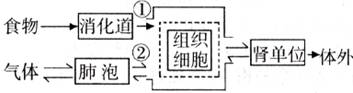 (1)食物所含的六类营养成分中,不经过过程①直接进行过程②的有机物是 。