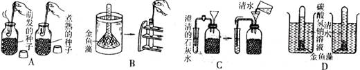 3.下图是四组分别用来验证植物某项生命活动的原料或产物的实验装置,请分析推断:(10分,每空2分)