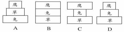 19、如果用一个图形来表示生态系统中兔、鹰、草三者之间的数量关系,你认为正确的图是