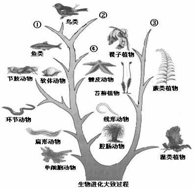 (1)鸟类和① 、② 都是由原始的④ 直接进化来的。
