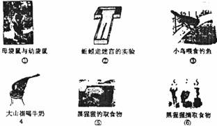 (1)上面描述的动物行为中,属于先天性行为的有_________________,属于学习行为的有___________________(填序号)。