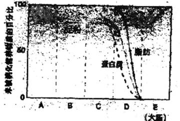 5.下图表示淀粉、脂肪和蛋白质在消化道中各部位(依次用A、B、C、D、E表示)被消化的程度,那么图中D代表消化道中的 ( )