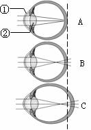 (3)图C所示的眼可通过配戴合适的 透镜加以矫正。