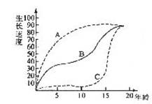 24.下图所示为你身体不同部位(或器官)生长速度的曲线图,其中,能代表生殖器官的是曲线
