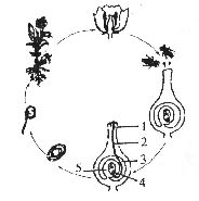 (3)花粉管到达[ ]__________后,释放精子,与[ ]__________结合形成受精卵。