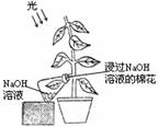 7.下图是一个实验装置,先将整个装置放在暗室中48小时,然后移到阳光下。数小时后,对瓶内、外叶片进行碘实验。该实验要证明: