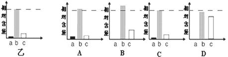 8.一个健康成年人的血液中的葡萄糖(a)、水(b)和无机盐(c)含量如图乙,该人大量饮水后排出的尿液中的成分最接近于: