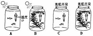 12.某研究性学习小组制作了以下4个密闭的玻璃瓶,放在一定的环境中。请根据你学过的知识,判断哪个瓶中生物的生存时间最短?