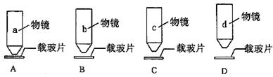 14.用显微镜的一个目镜分别与4个不同倍数的物镜组合观察临时装片,形成清晰物像时,每一物镜与载玻片的距离如下图所示。在一个视野中看到的细胞数目最多的是: