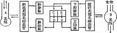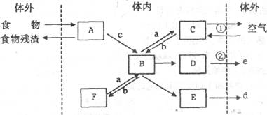 29.(12分)下图为人体新陈代谢示意图,其中ABCDEF表示相关的细胞、器官或系统,abcde表示相关物质,①②表示生理过程。请分析回答问题: