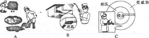 (3)图C告知:疫情一旦发生,对发生疫情的_________区要采取强制________措施,提高疫病免疫率。