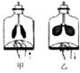 C.甲图演示呼气,膈肌舒张 D.乙图演示呼气。膈肌收缩