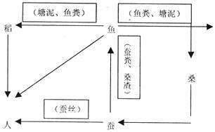 33.(13分)我国是世界上最早出现生态农业布局的国家,很早以前,我国劳动人民就学会了利用桑叶喂蚕,蚕沙(蚕粪)养鱼,塘泥肥桑的方法,创造桑基鱼塘生态农业布局。随着社会的发展和科学的进步,“桑基鱼塘”这种农业布局也得到了不断的完善和发展。如珠江三角洲地区人工建立的新的“桑基鱼塘农业生态系统”,获得了稻、鱼、蚕茧的全面丰收。下面是该生态系统的物质循环和能量流动示意图,请回答: