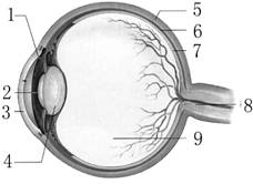27、(10分)下图是眼球结构示意图(见下页),请据图回答: