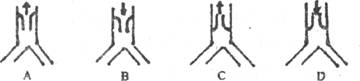 30.在下图中,如果箭头表示正常的血流方向,则较粗血管能正确表示静脉的是