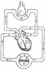 34.下图是气体交换与血液循环的关系示意图(图中7表示肺泡,8表示组织细胞),看图回答: