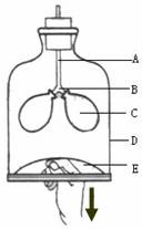 50.根据图(模拟膈肌的运动示意图)完成下列各题。