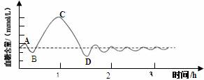 52.下图为正常人的血糖含量变化曲线:正常人的血糖在饭后1h(BC段)大幅度上升,在饭后2h后血糖的含量出现了大幅度下降(CD段),血糖含量的下降与哪种激素有关:( )